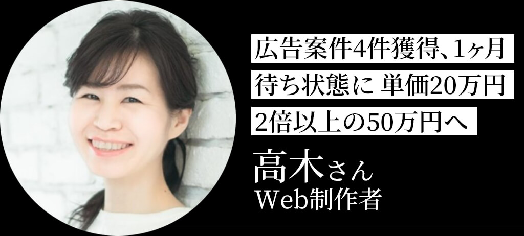 広告を学んで価値が正しく伝えられるようになり、精神的にも経済的にも満足できる状態になれたので、とてもうれしく思います